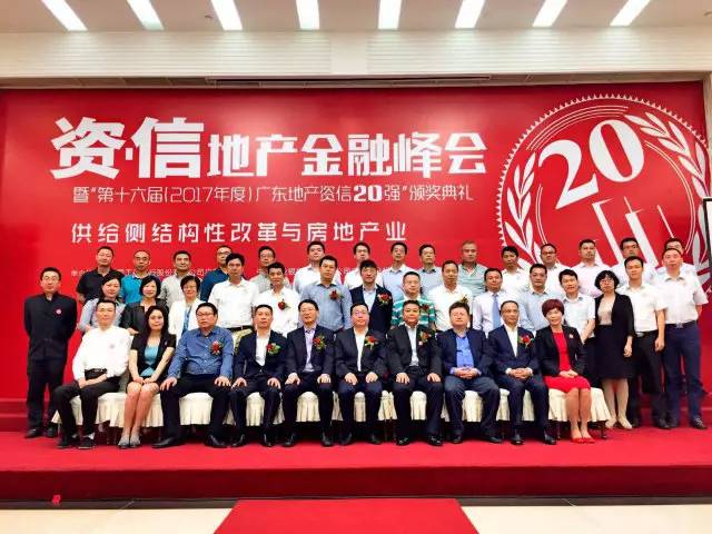 2017年6月8日,“資·信”地產(chǎn)金融峰會(huì)暨第十六屆(2017年度)廣東地產(chǎn)資信20強(qiáng)頒獎(jiǎng)典禮在廣州盛大舉行。