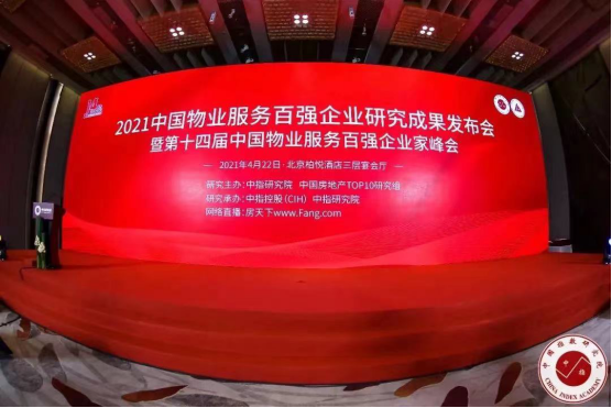 2021年4月22日,由中國指數(shù)研究院、中國房地產(chǎn)TOP10研究組主辦的“2021中國物業(yè)服務百強企業(yè)研究成果發(fā)布會暨第十四屆中國物業(yè)服務百強企業(yè)家峰會”于北京隆重舉行。