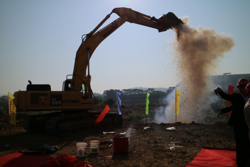 拜祭完成后,陳董、馬輝總等領(lǐng)導(dǎo)們齊心協(xié)力切開金豬,動(dòng)土儀式圓滿完成。