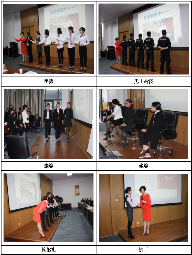接著,孫老師理論和實(shí)操演練相結(jié)合為我們講解個(gè)人在不同場(chǎng)合所需要掌握的儀容、儀表、儀態(tài)禮儀知識(shí)。儀容儀表方面對(duì)女士的整體要求是端莊、優(yōu)雅、自然,男士的整理要求是整齊、整潔、清爽,強(qiáng)調(diào)女士在職場(chǎng)中妝容宜淡妝,著裝以職業(yè)套裝或套裙為宜。儀態(tài)禮儀方面是指?jìng)€(gè)人在生活或工作中的舉止所表現(xiàn)出的姿態(tài)和風(fēng)度,主要有男女士站姿、坐姿、走姿、蹲姿、手勢(shì)及鞠躬禮。大家在老師的示范中和自已的親身體驗(yàn)中學(xué)習(xí)到很多知識(shí),比如坐著的時(shí)候女士應(yīng)該雙腿并攏并斜放與地面呈45度角;站立時(shí),腿并攏,女士小丁字步,男士?jī)赡_與肩同寬等等。