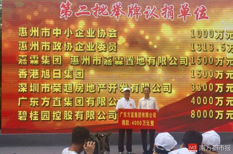 當(dāng)市委書記、市人大常委會主任陳奕威接受第二批愛心企業(yè)捐款時,氣氛達到最熱烈,臺下響起熱烈掌聲——廣東方直集團有限公司捐贈4000萬元!
