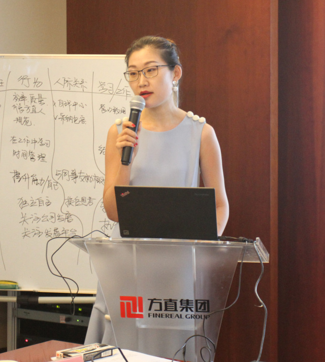 內(nèi)訓(xùn)師王瑩為大家?guī)怼稄男@人到方直人的角色轉(zhuǎn)變》的分享。她以四個關(guān)鍵詞作為分享重點:“凡事有交代、件件有著落、事事有回音”的靠譜、作為人生驅(qū)動力的熱情、傾聽和尊重他人的謙虛、全力以赴的感恩。