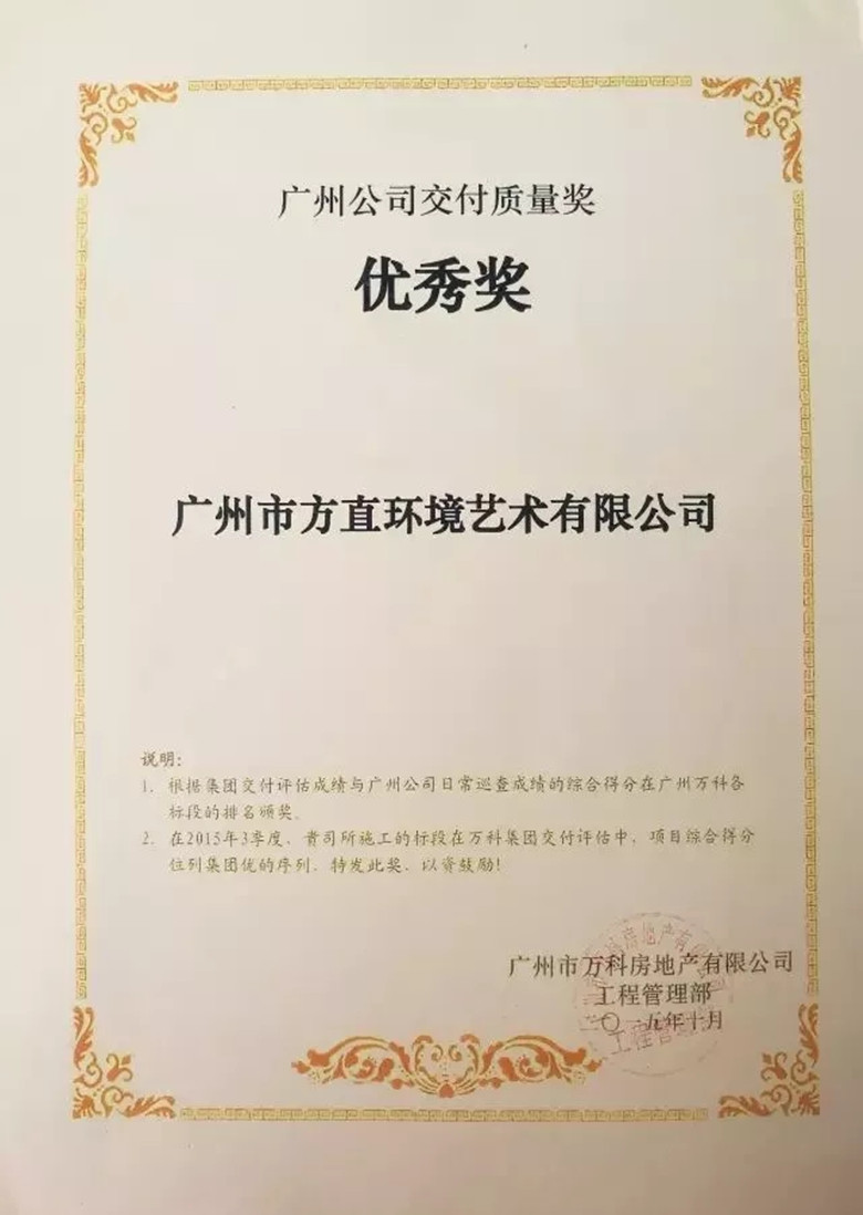 “寶劍鋒自磨礪出,梅花香自苦寒來”!付出總會(huì)有回報(bào)!在歷年受全國(guó)“第一房企”萬科表彰認(rèn)可的基礎(chǔ)上,方直環(huán)境追求精益求精,打造匠心精品!今再度獲得萬科雙表彰!