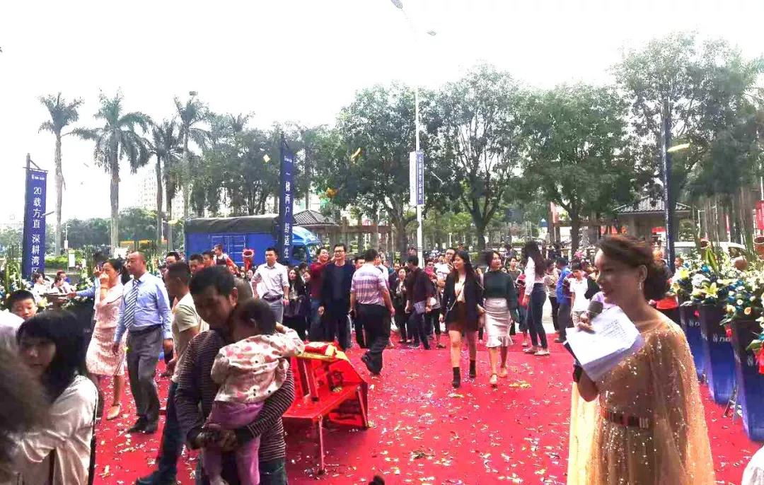 昨天上午9時(shí)許,揭幕儀式尚未開(kāi)始,營(yíng)銷(xiāo)中心外場(chǎng)早已人頭攢動(dòng)、人聲鼎沸。來(lái)自深莞各地的購(gòu)房者和媒體以及地產(chǎn)各界人士紛紛留影,前來(lái)一睹方直·星瀾的風(fēng)采,盛況空前。
