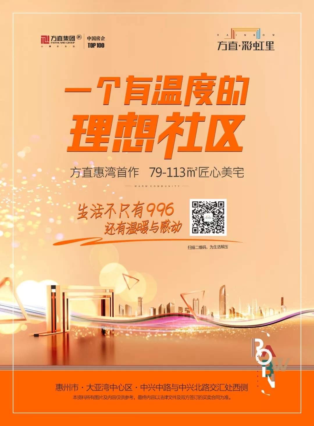 方直·彩虹里,地處大亞灣中心區(qū),距離惠州南站僅15公鐘車程,是一個(gè)以“鄰里·共享”為理念建造而成的溫暖社區(qū)。