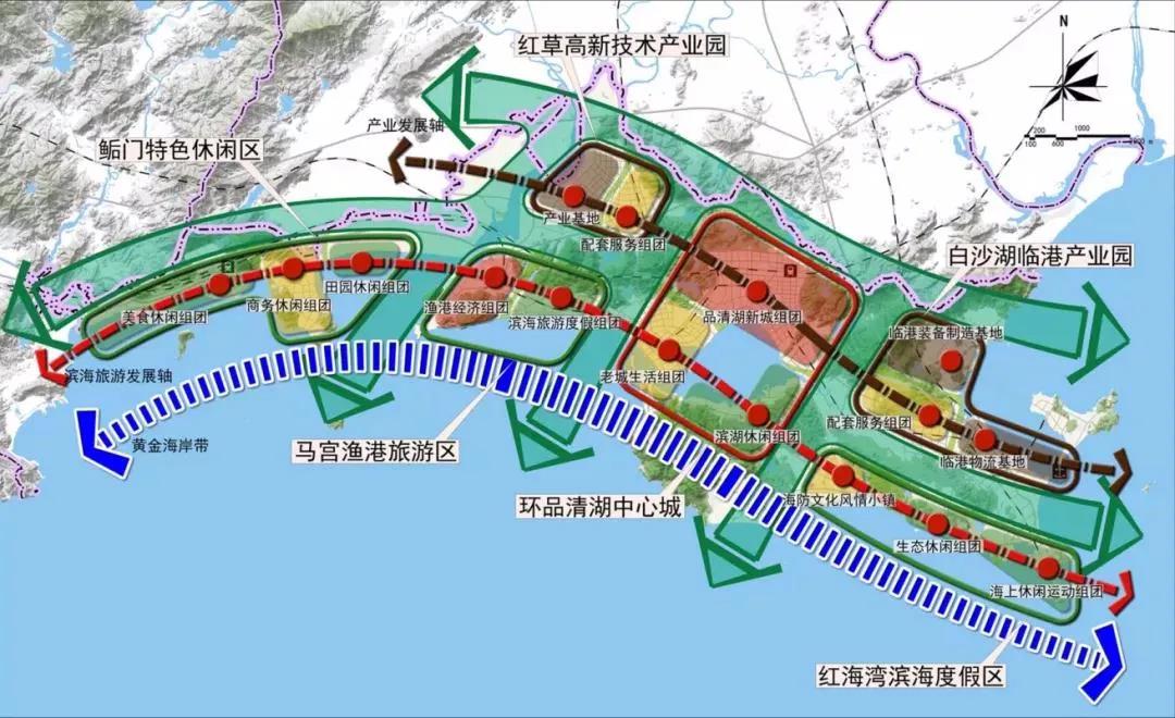 2013年,廈深高鐵正式開(kāi)通,作為粵東門(mén)戶(hù)的汕尾高鐵站建成,形成了一個(gè)強(qiáng)有力的支點(diǎn)。同時(shí)以此為原點(diǎn),向品清湖擴(kuò)展形成高標(biāo)準(zhǔn)的新城,未來(lái)將承載極為廣闊的發(fā)展前景;而在這個(gè)新城中,需要一條清晰明確的中軸線,將重點(diǎn)資源全部串連起來(lái),以支撐和帶動(dòng)整體片區(qū)的有機(jī)發(fā)展。汕尾亟需一條能夠承擔(dān)城市崛起的中軸線,串聯(lián)起城市的景觀、功能與發(fā)展,引領(lǐng)城市的騰飛。