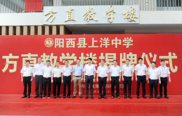 2020年9月27日,方直集團(tuán)捐建的上洋中學(xué)“方直教學(xué)樓”落成典禮暨移交儀式隆重舉行!陽(yáng)江市委常委、陽(yáng)西縣委書記孫波同志和方直集團(tuán)董事長(zhǎng)陳專先生出席揭牌儀式。陽(yáng)西縣委常委、縣政府、人大、政協(xié)、教育局和鎮(zhèn)委鎮(zhèn)政府等相關(guān)領(lǐng)導(dǎo)、方直集團(tuán)相關(guān)領(lǐng)導(dǎo)及上洋中學(xué)全體師生近千人全程參與。