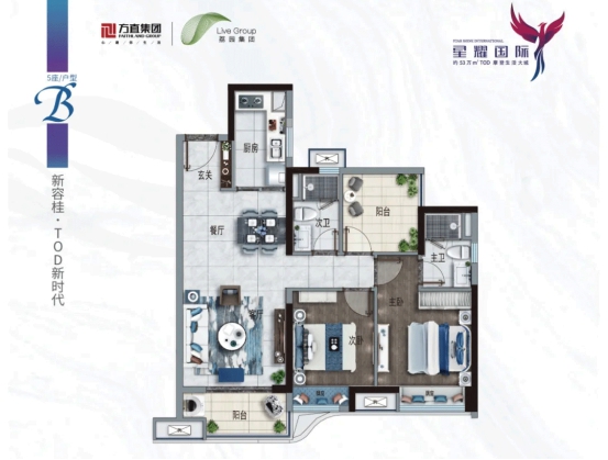 據(jù)了解,星耀國際整體建面約53萬㎡,其中包括23萬㎡的摩登商業(yè)綜合體,4棟公寓樓以及10棟高層洋房。