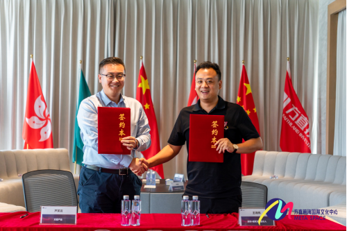 △ 方直產(chǎn)業(yè)公司前海項(xiàng)目負(fù)責(zé)人蘆笑言先生(左)與深圳?曦茉文創(chuàng)董事長(zhǎng)王湘?zhèn)ハ壬ㄓ遥?/span>
